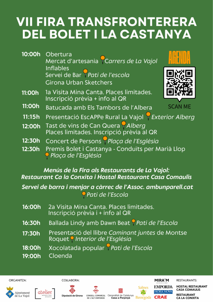 Actualitat, Agenda VII FIRA TRANSFRONTERERA DEL BOLET I LA CASTANYA 馃尠馃崉 12/10/2025 PREM AQU脥 PER INSCRIURE’T A LES ACTIVITATS DE LA FIRA I PREMIS BOLET I CASTANYA 馃尠馃崉 PREMIS BOLET I CASTANYABaixa EscAPPe rural de La Vajol El dia 12/10 estrenem l’EscAPPe rural de La Vajol, podeu descarregar-vos la app aqu铆: DESCARREGAR L’APP < Entrada AnteriorEntrada Posterior >